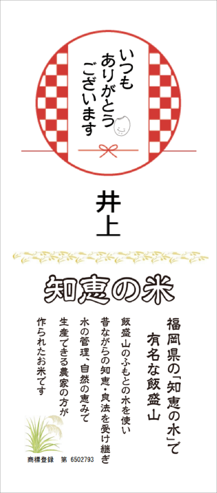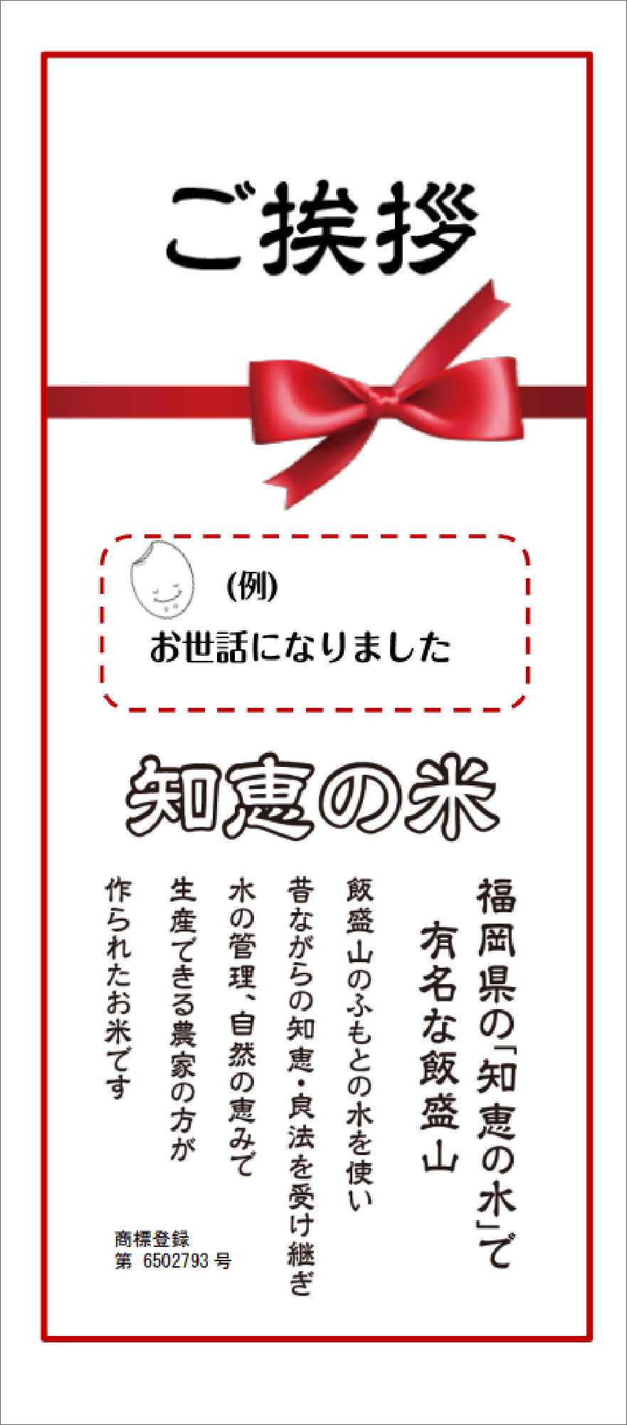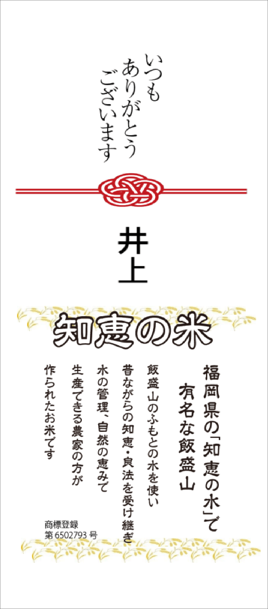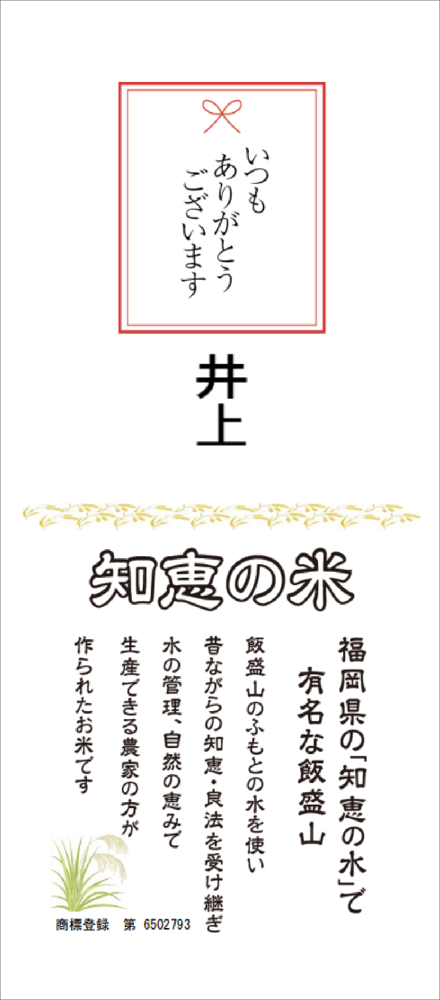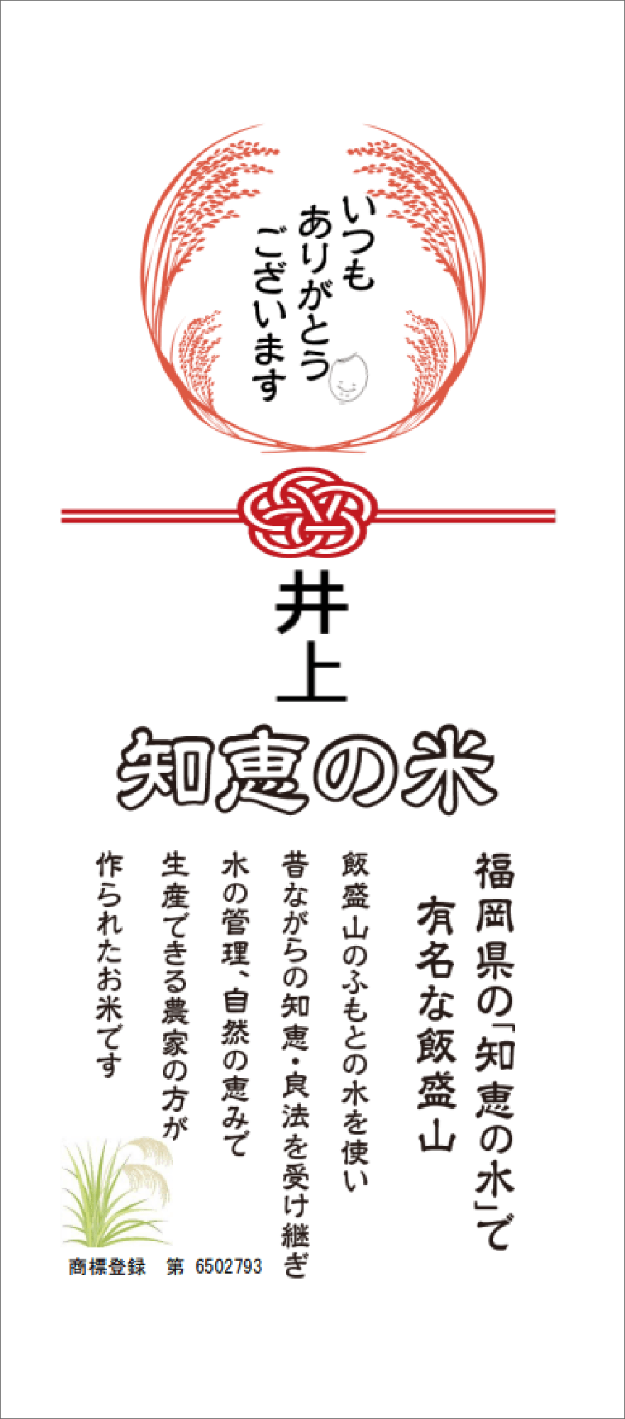 『知恵の米』は最新の年度産のみ使用のお米です